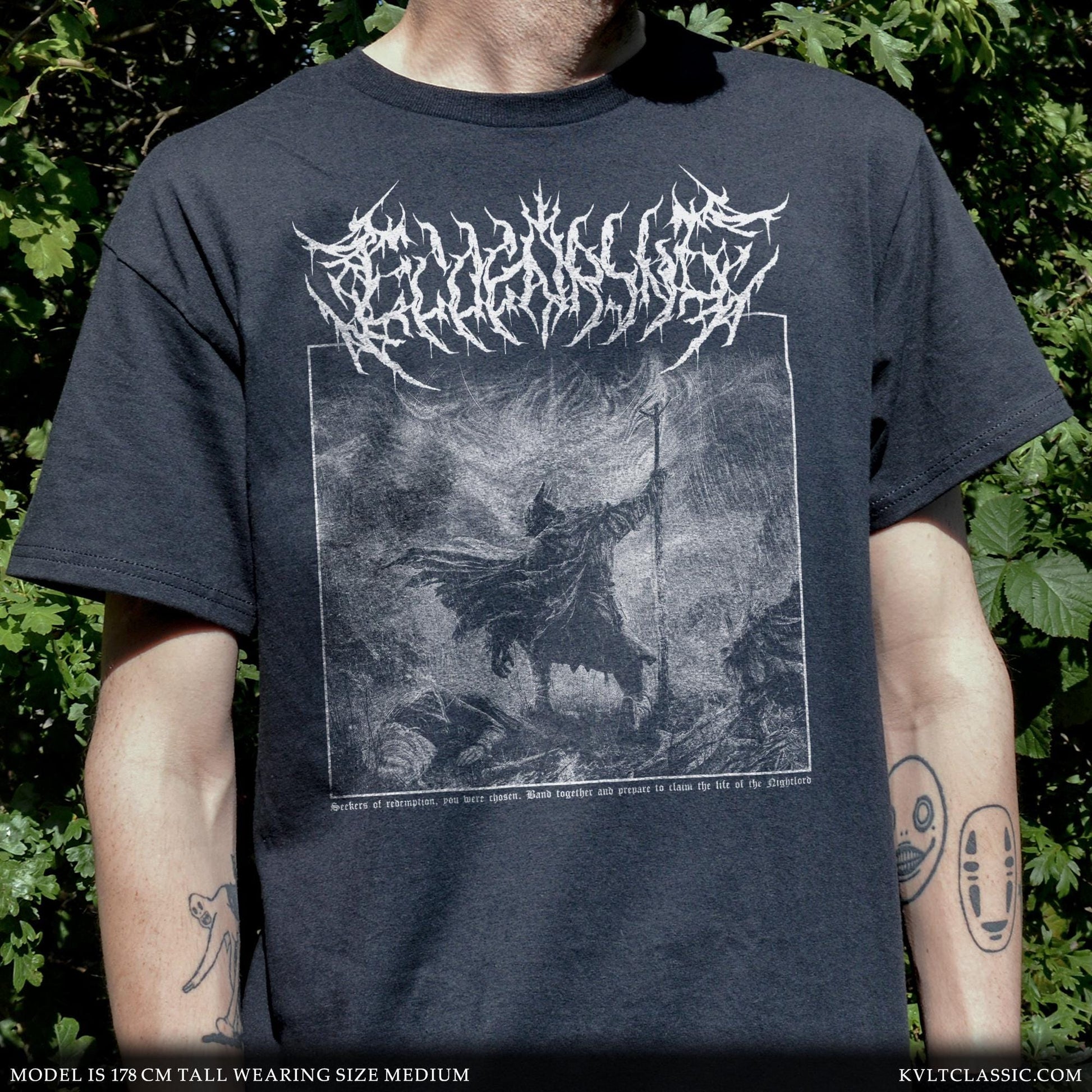 This unique custom design is handmade to capture the authentic look and feel of underground band merchandise. Our high quality printing techniques produce incredibly detailed graphics, and are printed on the same kind of T-Shirts you’d buy at gigs, concerts and festivals.